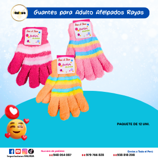 GUANTES PARA ADULTO AFELPADOS RAYAS